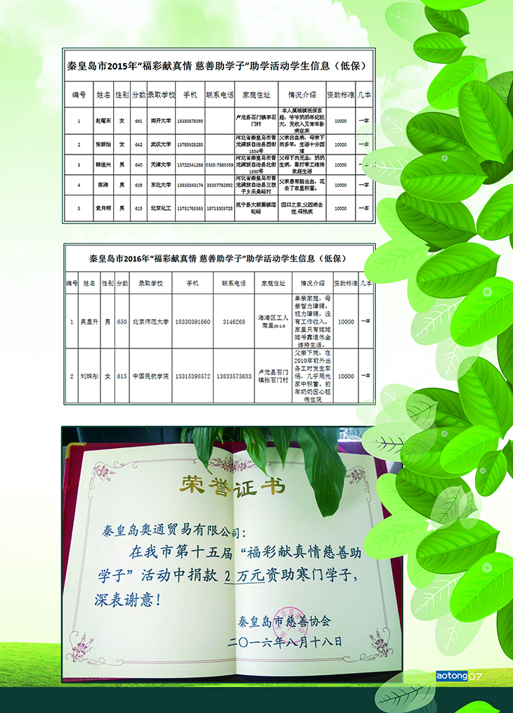 我市“福彩獻真情 慈善助學子”活動從2002年至今,已累計投入資助金3200萬元,資助人數(shù)6600多人,曾多次榮獲中華慈善總會、省慈善總會兩級慈善項目獎,已成為我市最具影響力的一個公益品牌,為秦皇島這座“中國最具愛心城市”提供了生動的注腳。